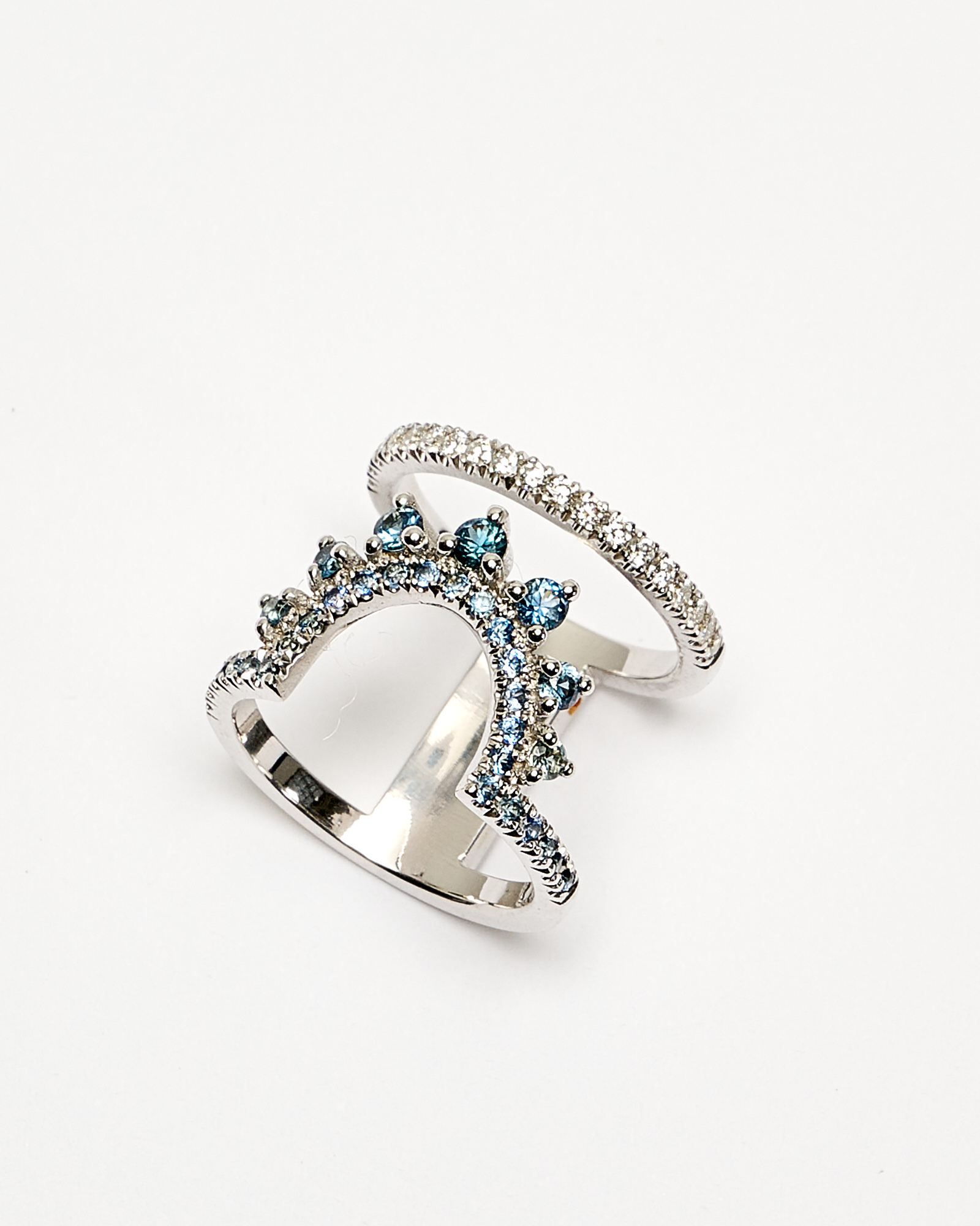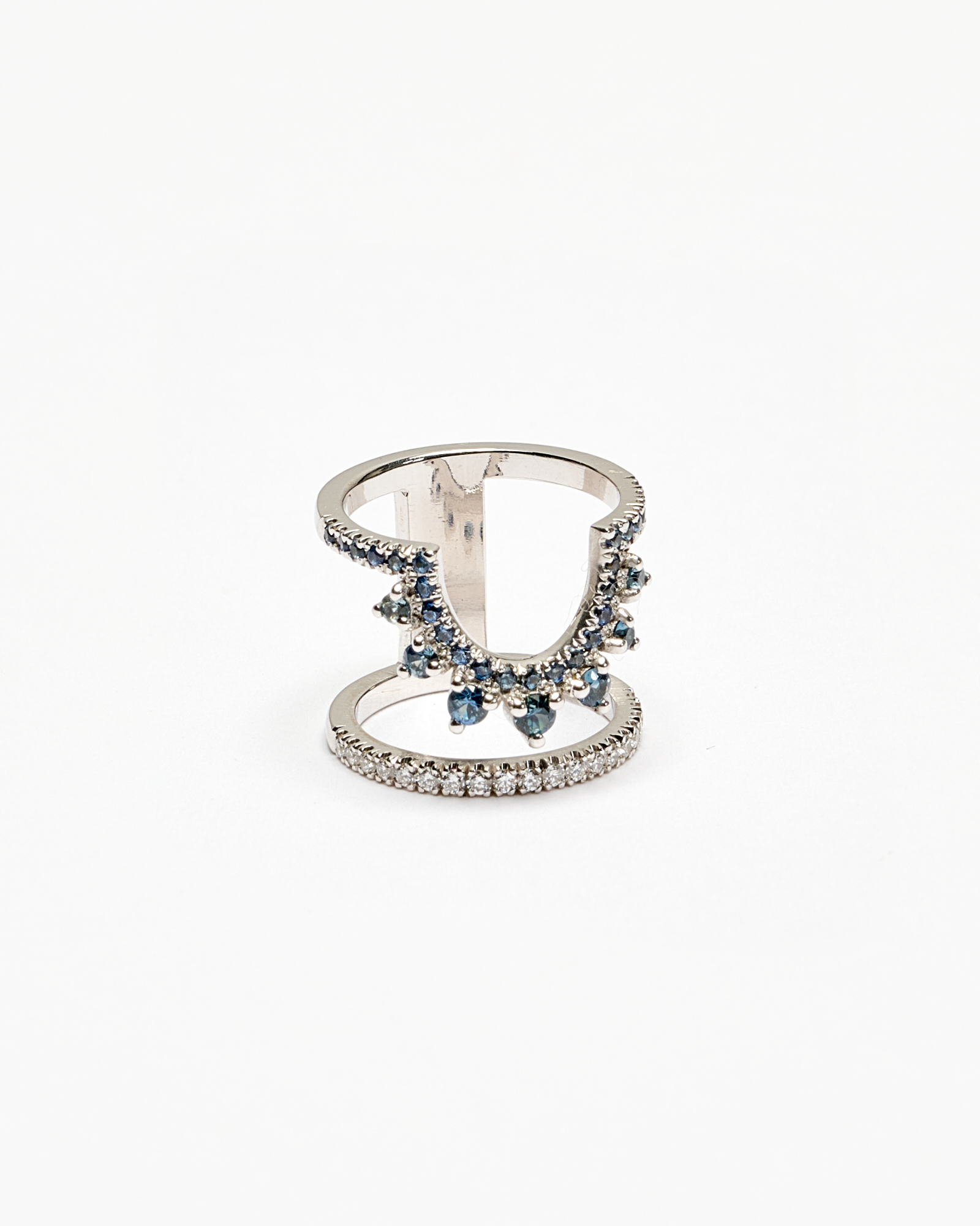 BAGUE DE PHALANGE EN OR BLANC 18CT SAPHIRS ET DIAMANTS