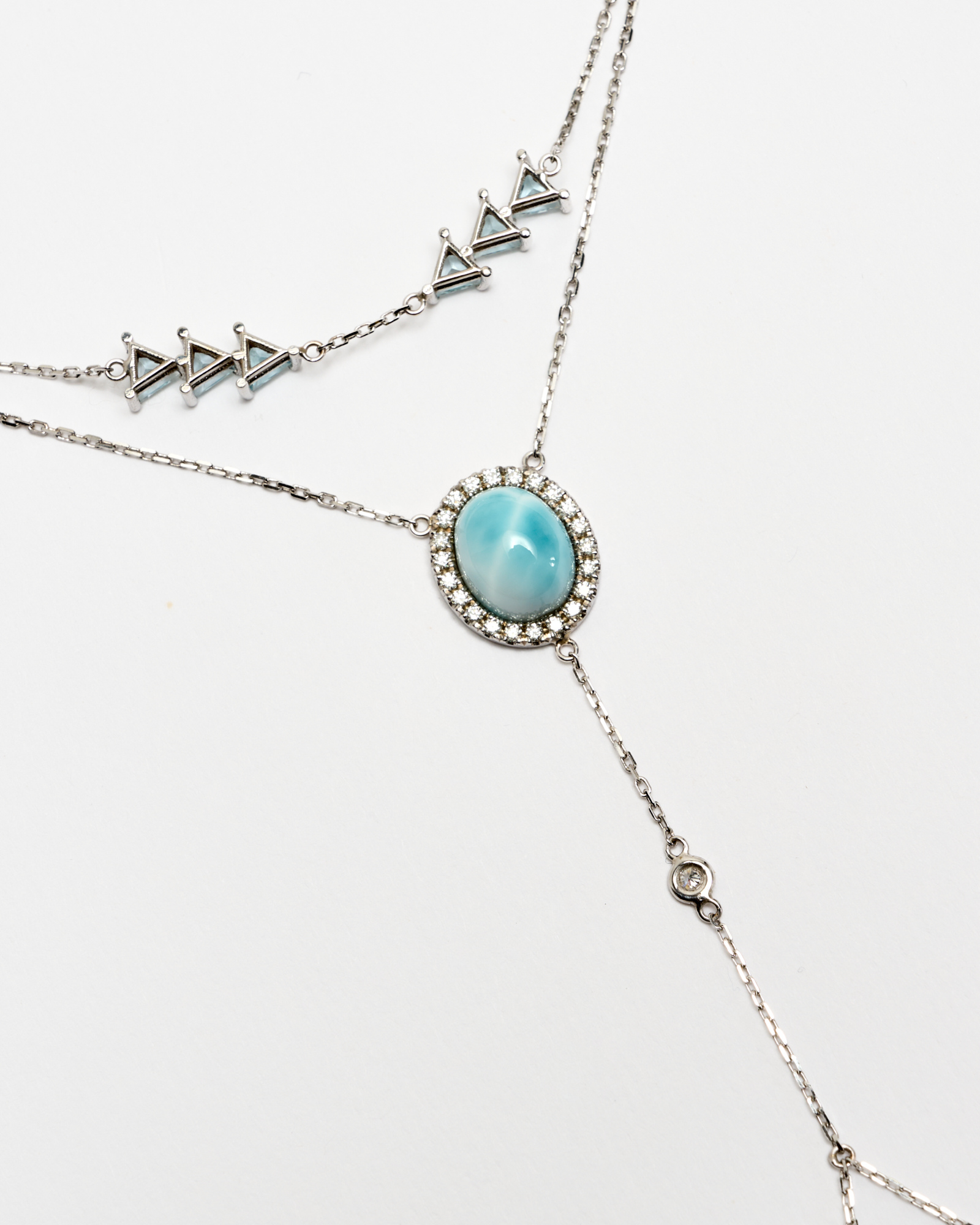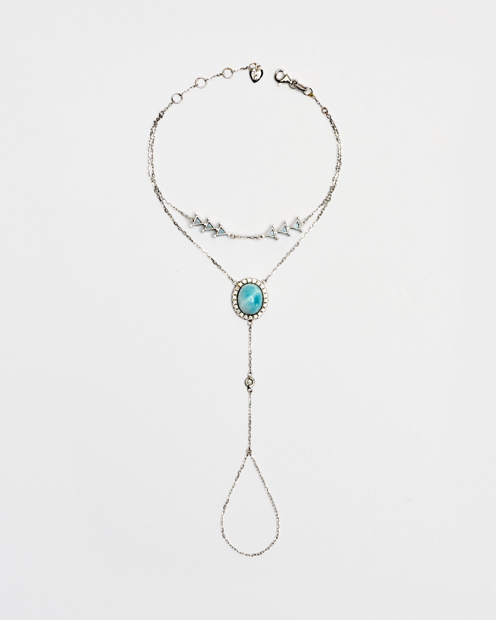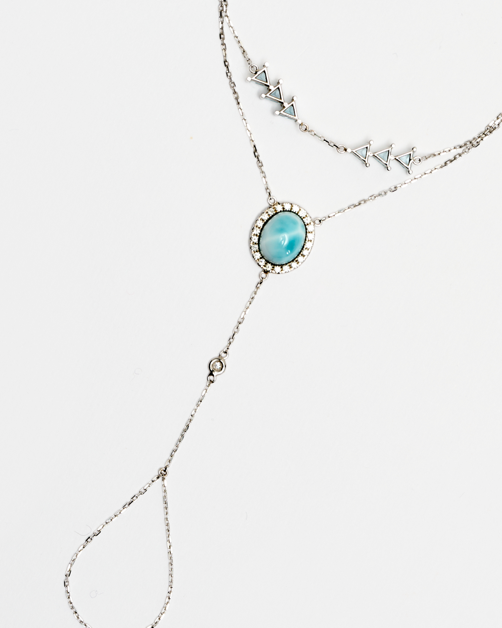 BIJOU DE MAIN EN OR BLANC 18CT AVEC LARIMAR, TOPAZE BLEUE ET DIAMANTS