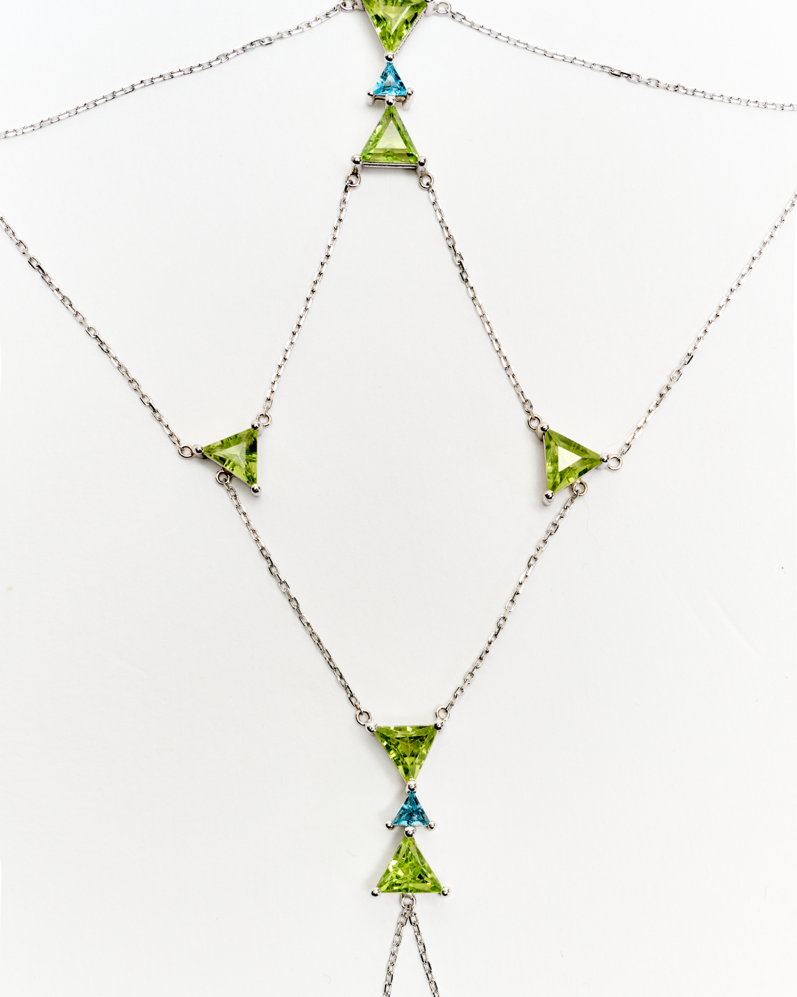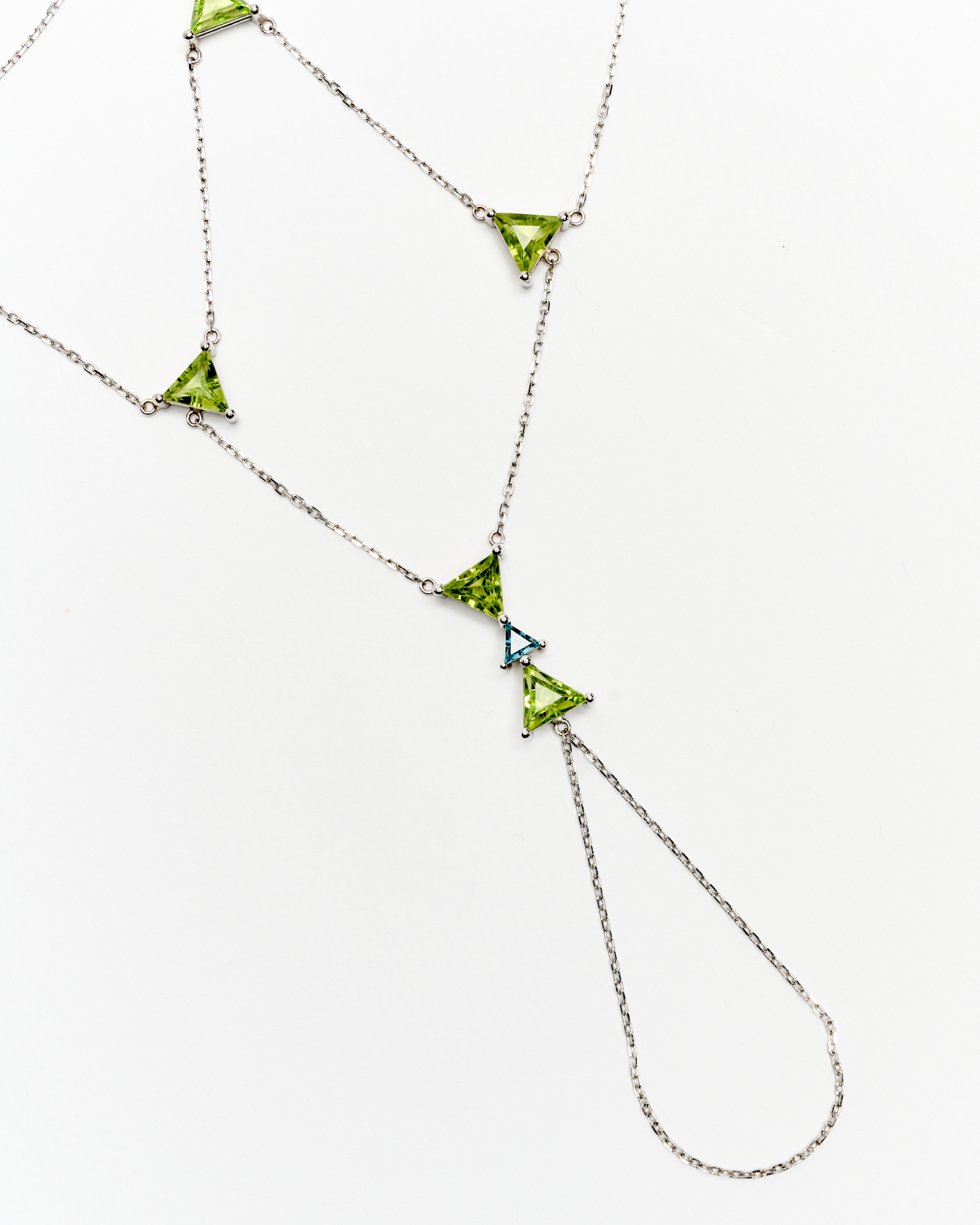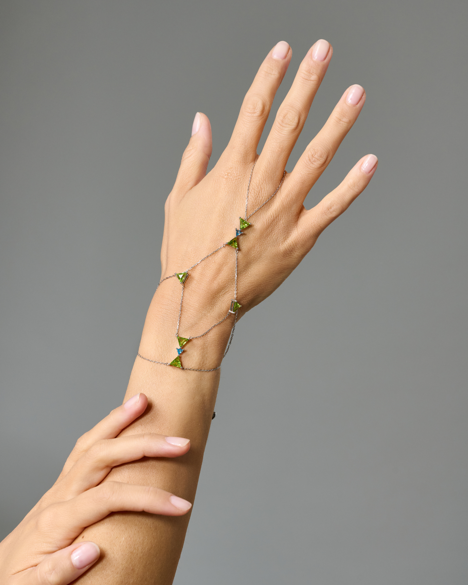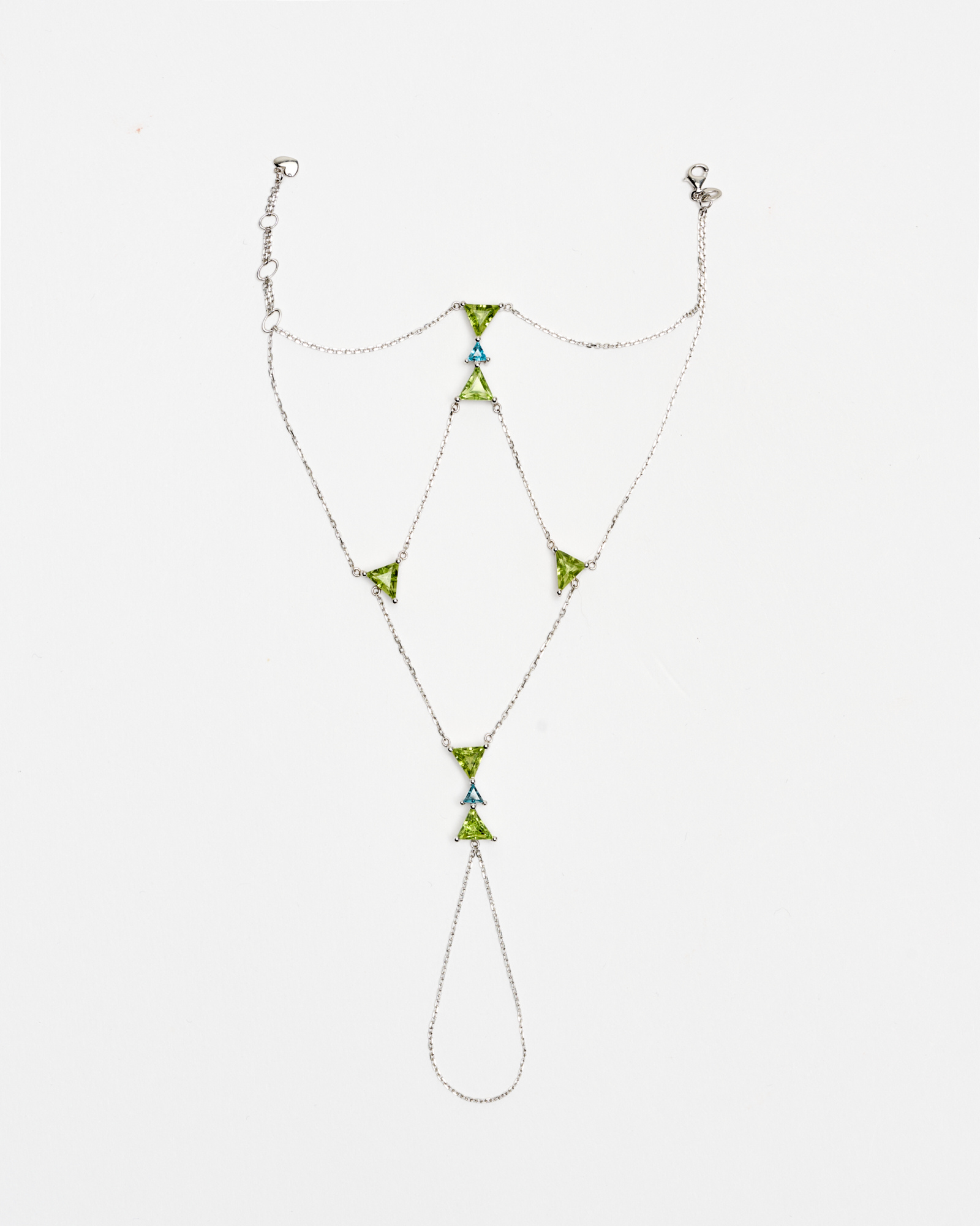 BIJOU DE MAIN EN OR BLANC 18CT AVEC PÉRIDOT ET TOPAZE BLEUE