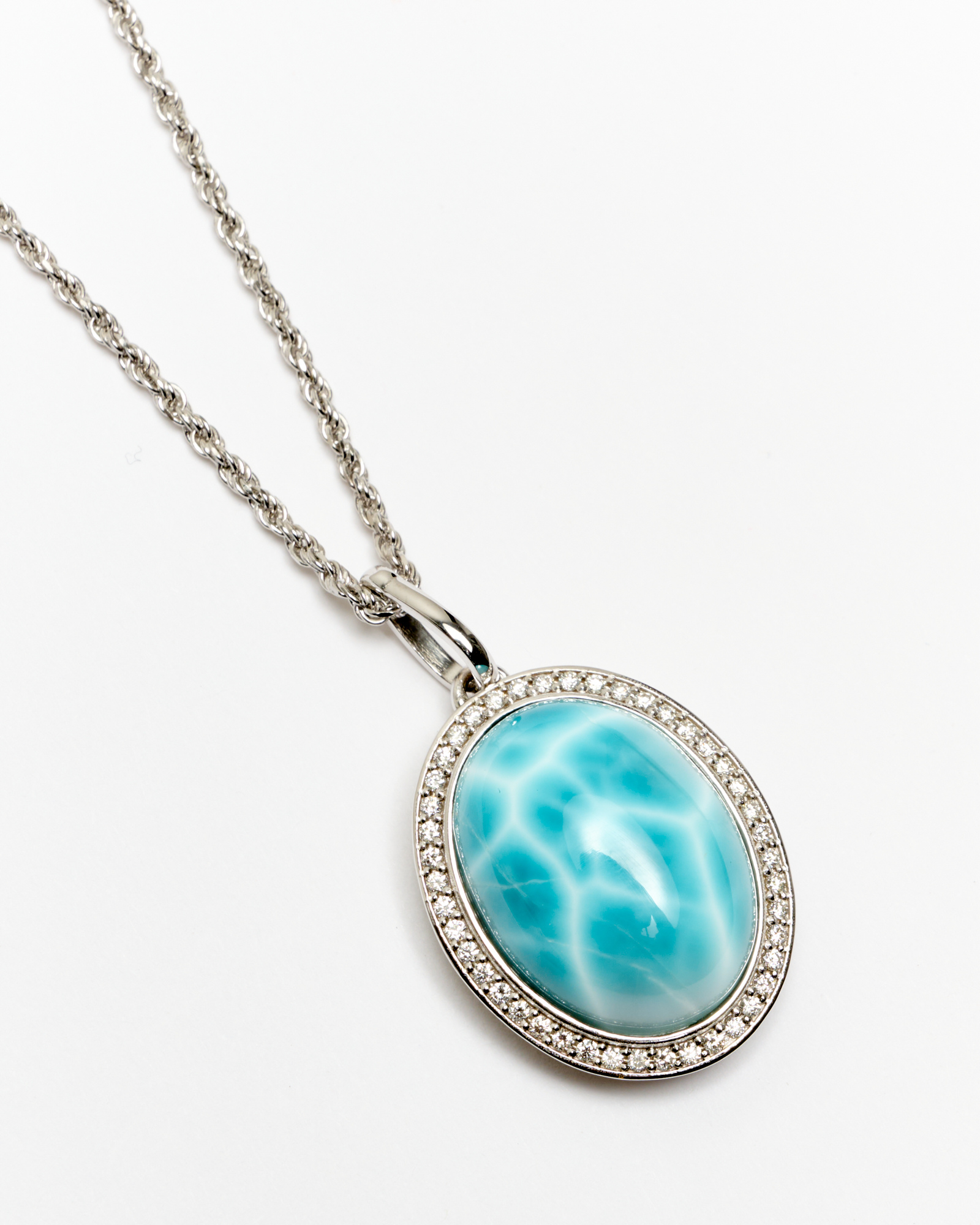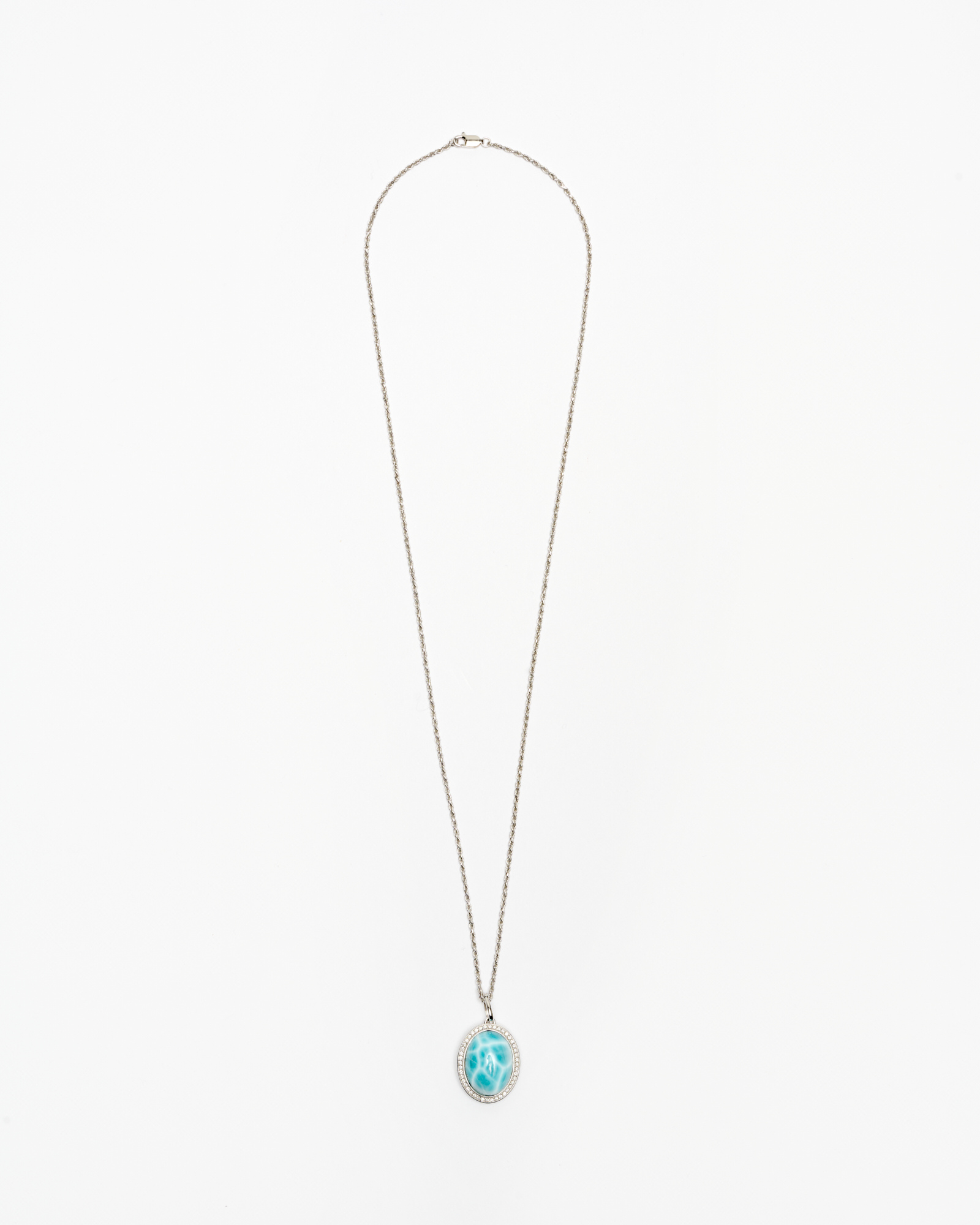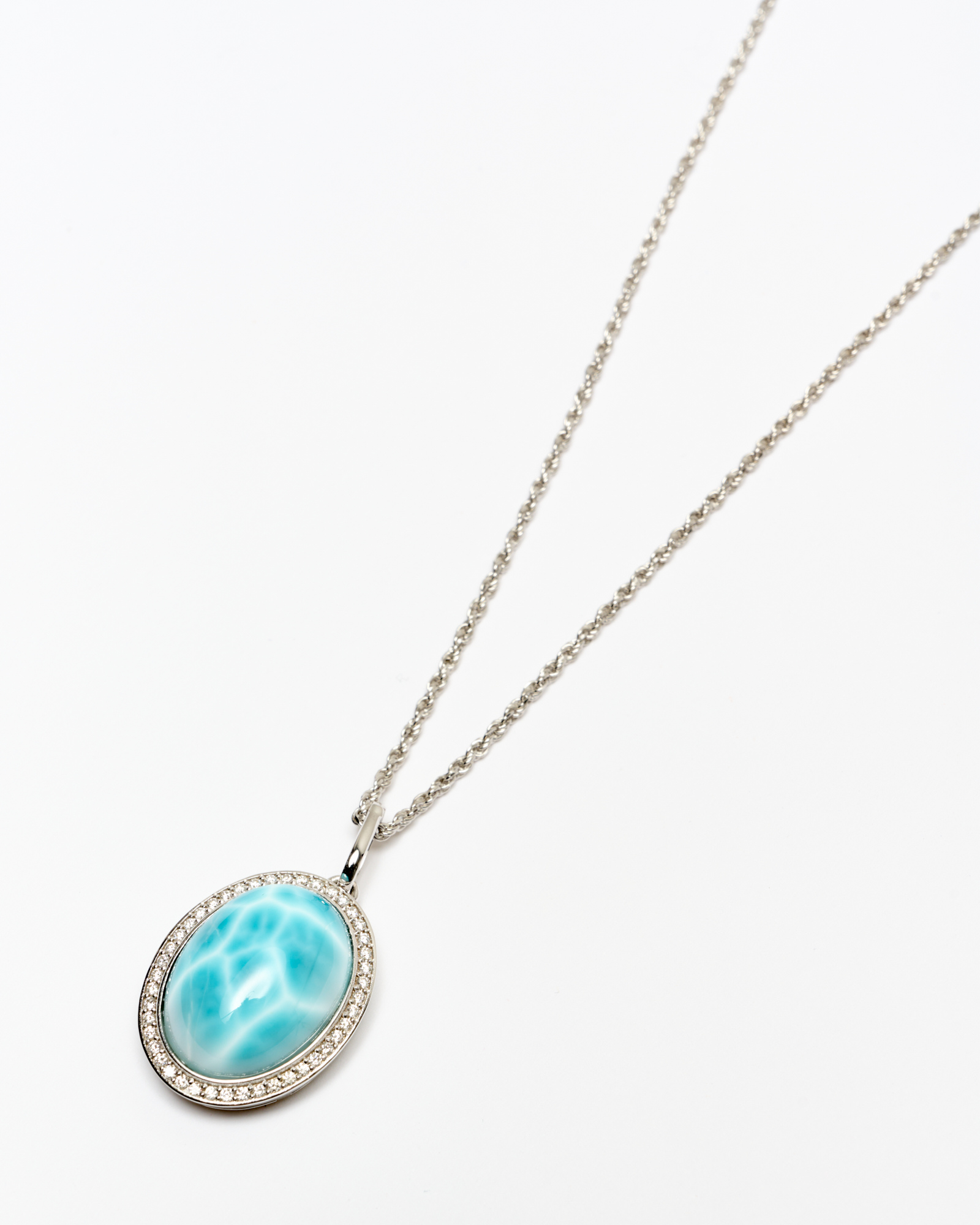 PENDENTIF EN OR BLANC 18CT LARIMAR ET DIAMANTS