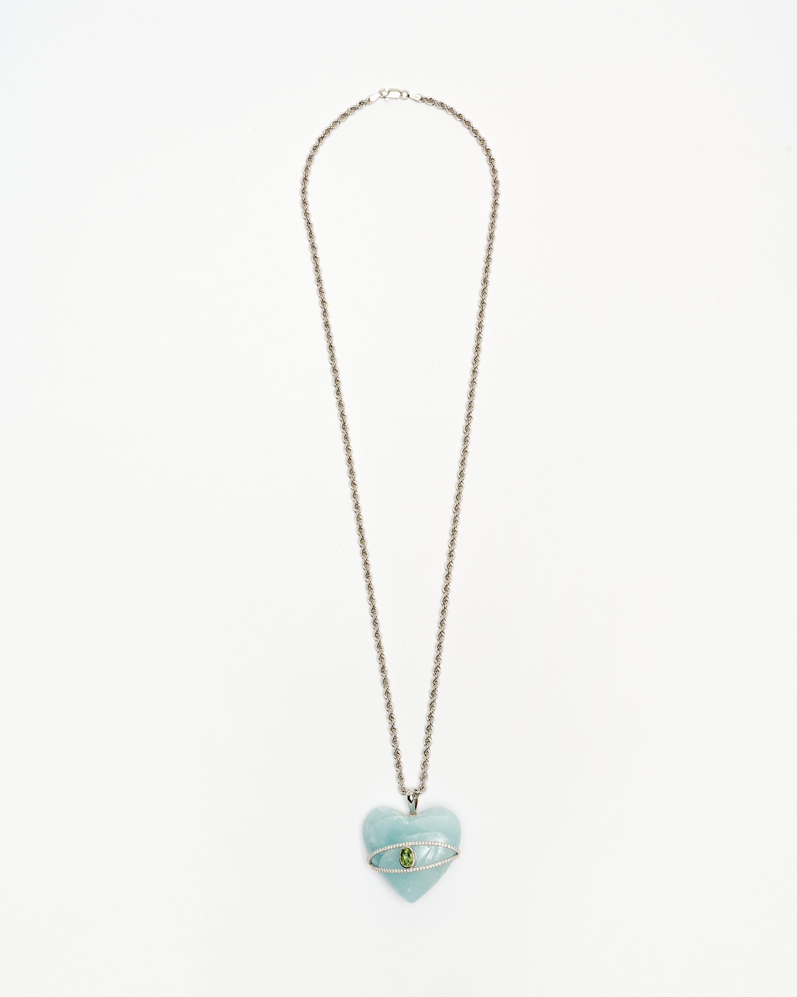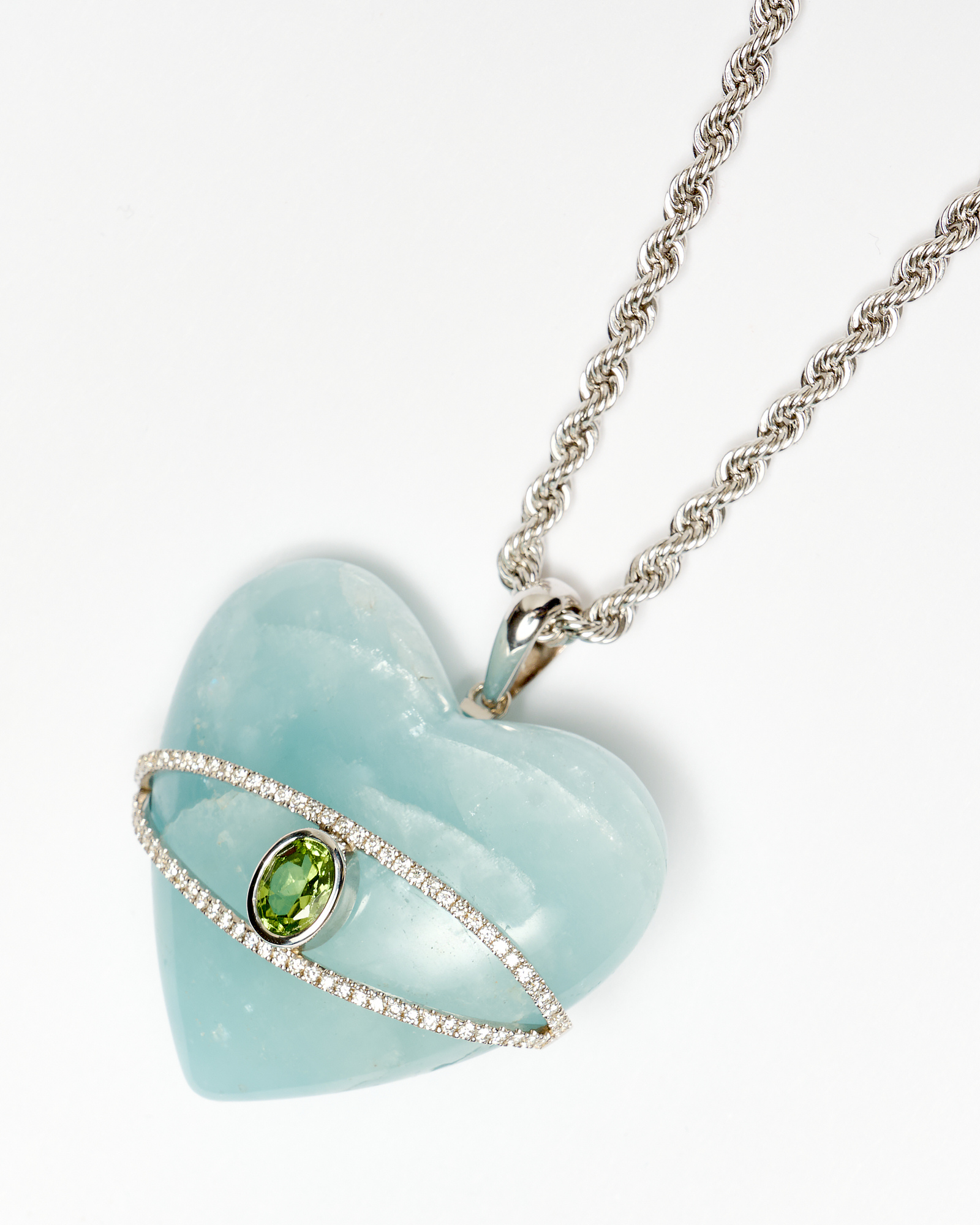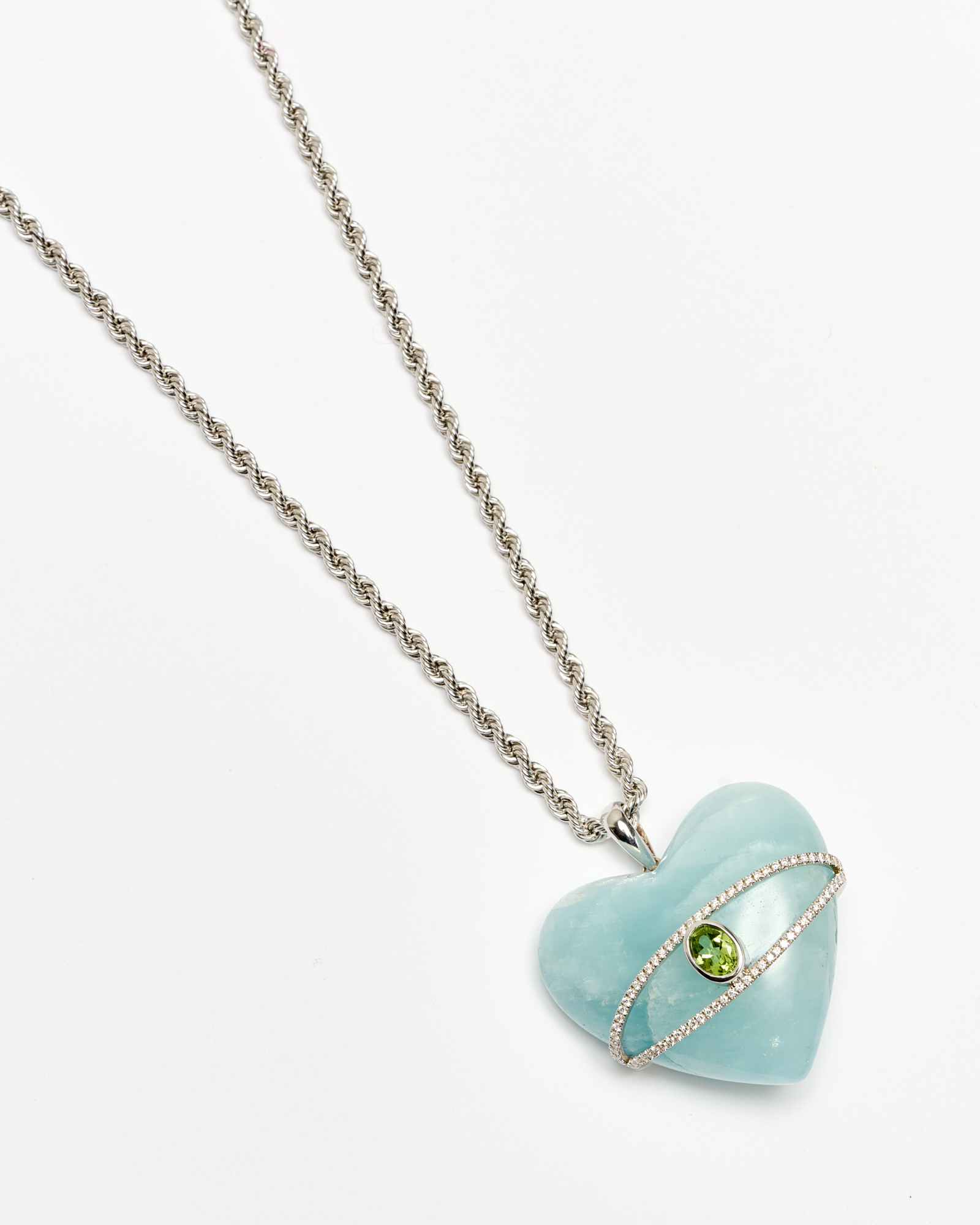 - Aigue-marine en forme de cœur : 38,5x26,5mm
