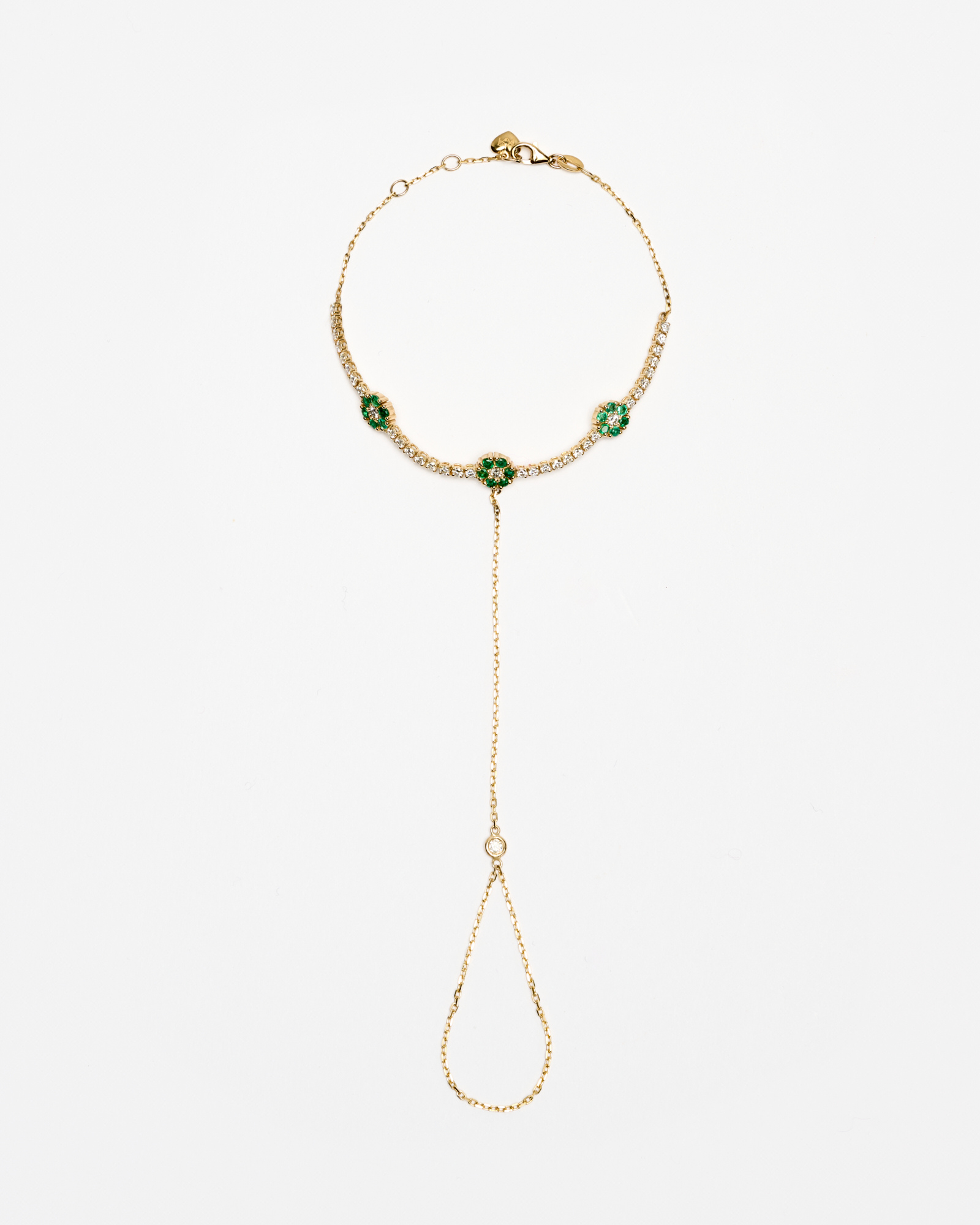 BIJOU DE MAIN EN OR JAUNE 18CT AVEC ÉMERAUDES ET DIAMANTS